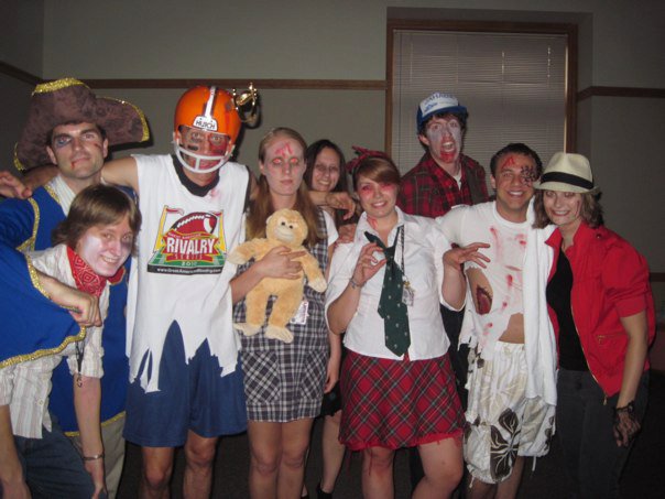 The Teaching Assistants decided to give the Resident Assistants the night off for one of the dances. We took over dance planning and decorations while they looked out for the students' well-being. The result: a spook fest known as Fright Night. Kudos to Thalia (see below in the red jacket) for organizing and choreographing a solid 3 minute dance routine to Michael Jackson's "Thriller." They nailed it to the delight of a crowded, energy-filled dance hall. That's me on the far left in the swashbuckler outfit with my arms around Tracy and Jesse.